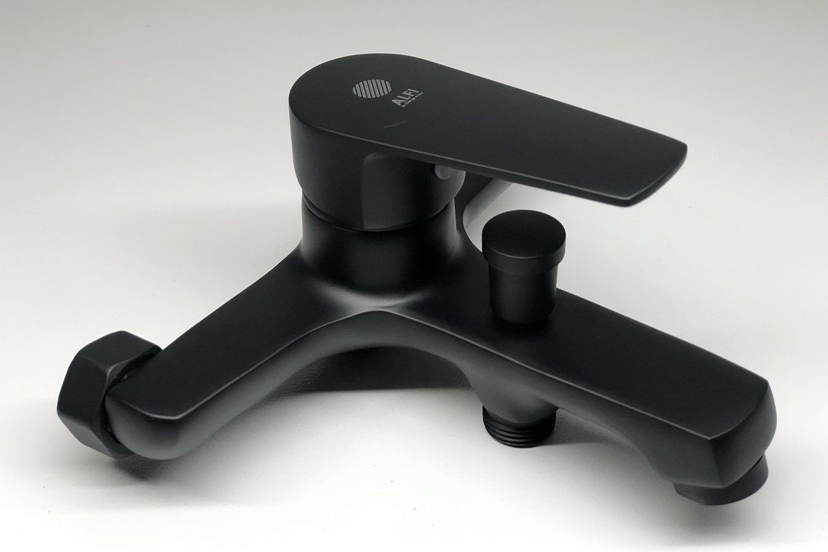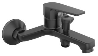 Однорычажный смеситель для ванны и душа Orange Loop с фиксированным изливом. Покрытие цвета матовый черный, за которым просто ухаживать мягкой салфеткой, нанесено методом порошковой окраски. Изделие снабжено долговечным керамическим картриджем, благодаря чему срок службы смесителя измеряется десятилетиями. Аэратор предотвращает разбрызгивание воды, делая струю мягкой. Модель из пищевой латуни отличается повышенной прочностью и износостойкостью. В комплекте душевой набор (душевая лейка 3 режима, шланг 1500 мм., настенный держатель лейки).
