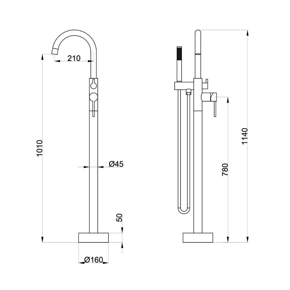 Однорычажный смеситель для ванной комнаты Orange Steel предусматривает напольное крепление. Такая модель будет особенно актуальна в новостройках, где часто вывод воды предусмотрен именно из пола. Смеситель выполнен в минималистичном стиле и имеет простой изогнутый излив крана, боковой однозахватный рычаг управления, шланг 150 см с защитой от перекручивания (в металлической оплетке) и ручной душ (1 режим). Основа конструкции выполнена из латунного сплава - отлично зарекомендовавшего себя материала; за переключение потоков воды отвечает керамический дивертор. Цвет матовый черный.