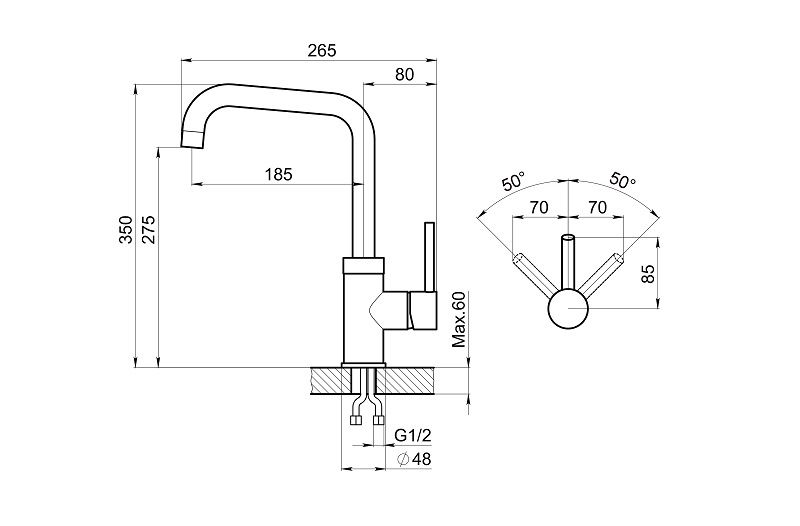 • Высота смесителя: