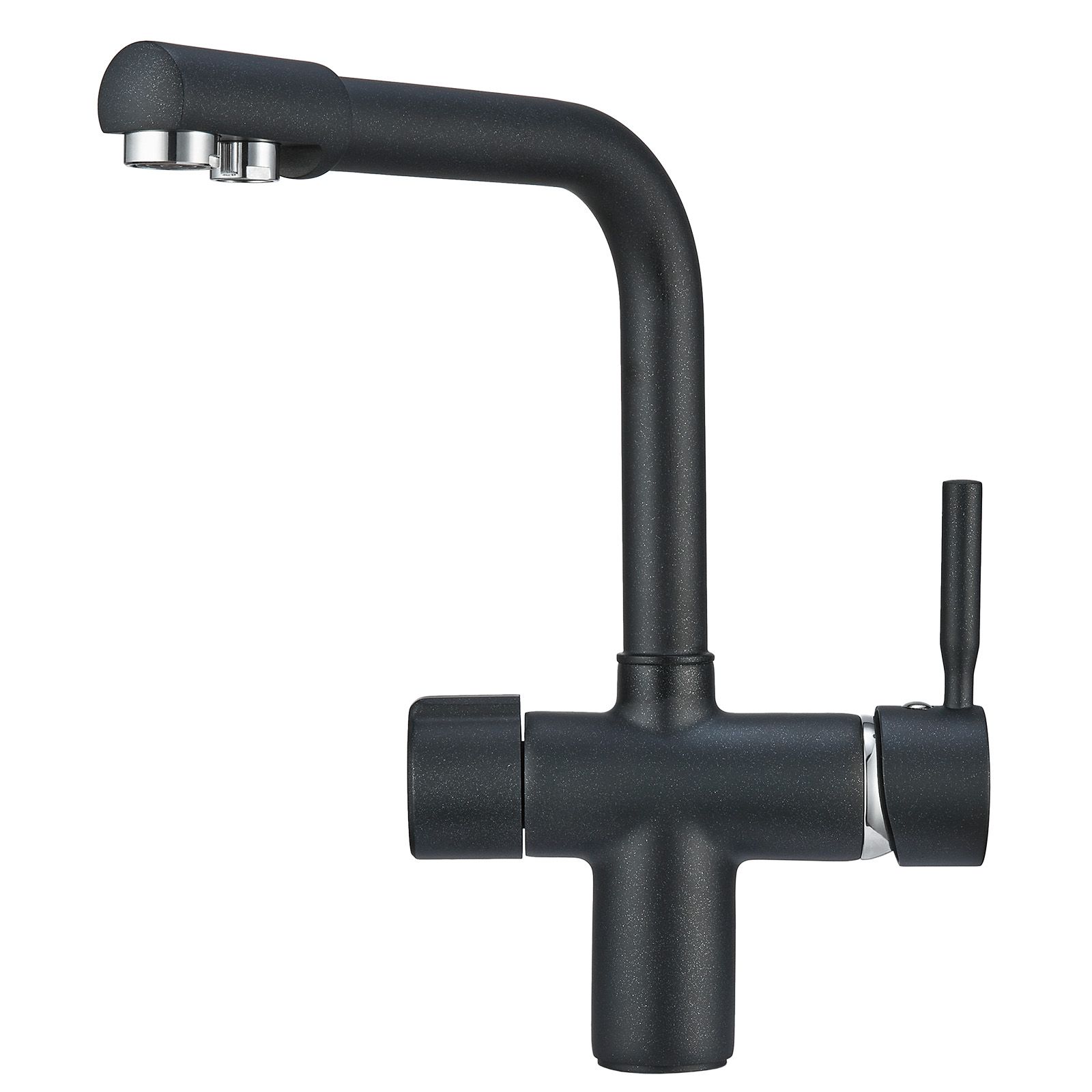 Смеситель для кухонной мойкиЦветовая гамма: Алюминиум, Классик, Антик, Песок, Пирит, Базальт, Арктик, Эспрессо, Графит, Черный, ШварцГибкая подводка (3 шт.); набор для крепления; прокладки уплотнительные (2 шт.); аэраторГарантийный срок от производителя - 5 лет