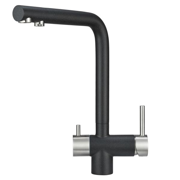 Смеситель для кухонной мойкиЦветовая гамма: Алюминиум, Классик, Антик, Песок, Пирит, Базальт, Арктик, Эспрессо, Графит, Черный, ШварцГибкая подводка (3 шт.); набор для крепления; прокладки уплотнительные (2 шт.); аэраторГарантийный срок от производителя - 5 лет