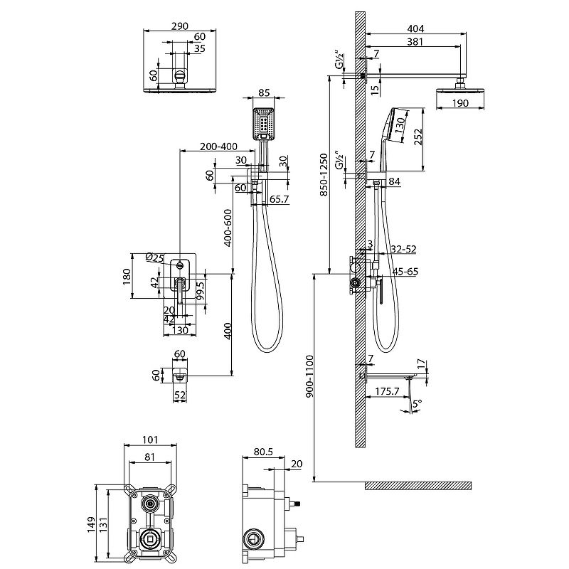 В комплекте поставки:Смеситель для душа (внешняя и внутренняя части).