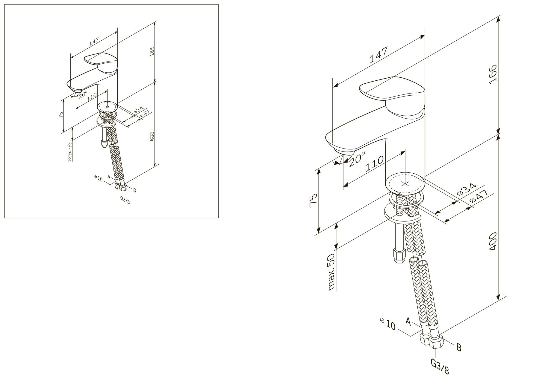 • Высота смесителя: