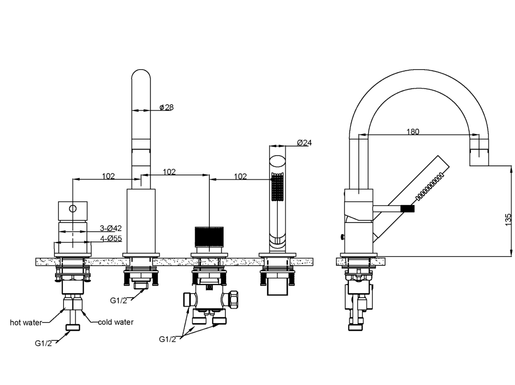 - Стандарт подводки: гибкая подводка G1/2