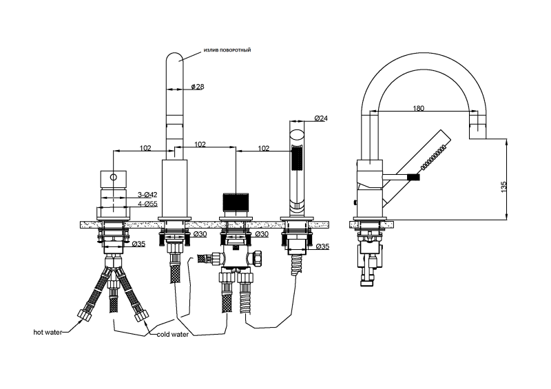 • Стандарт подводки: гибкая подводка G1/2
