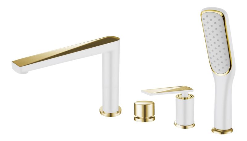 Смеситель на борт ванны Boheme Venturo белый/золото 380-W