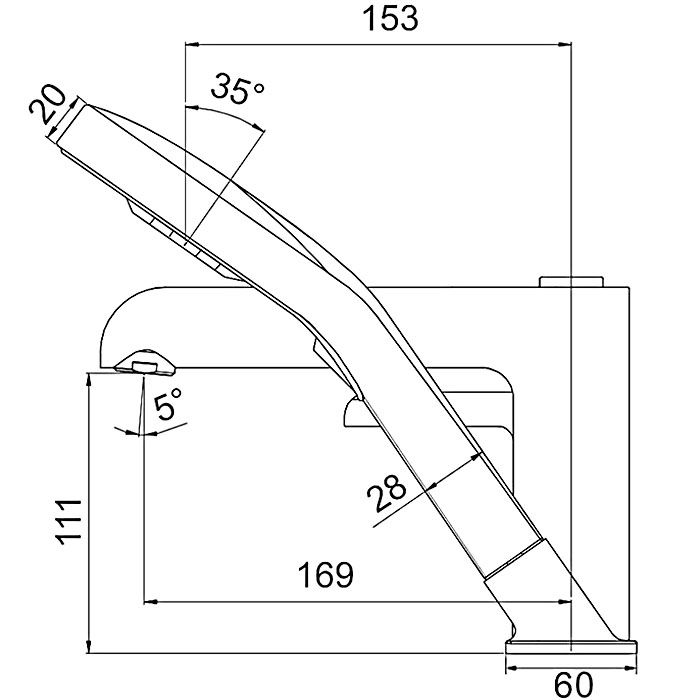 Смеситель на борт ванны Gappo G1103-6 чёрный/хром