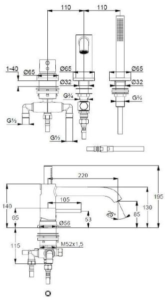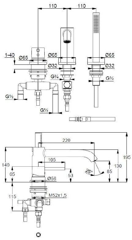 • однорычажный смеситель для ванны и душа DN 15
