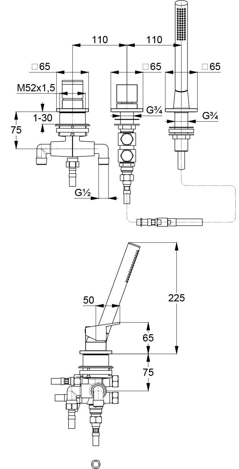 ванна: расход воды 23 л/мин при давлении 3 бара