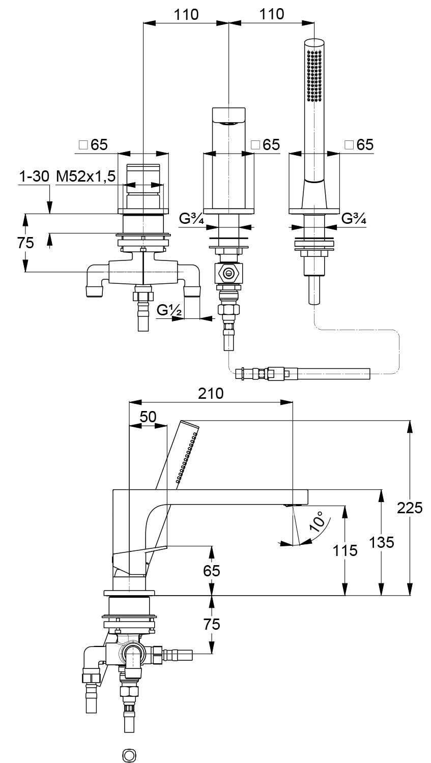 ванна: расход воды 23 л/мин при давлении 3 бара