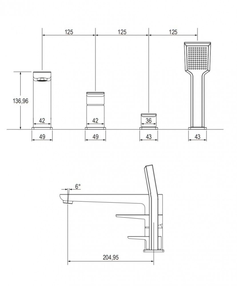 PARMA | смеситель для ванны на 4 отверстияЦвет: хром