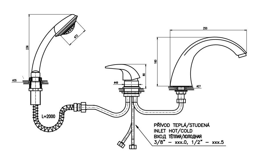 Смеситель на борт ванны Rav Slezak Dunaj D470.5PZ золото