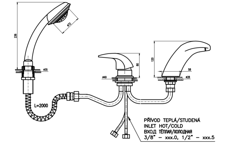 Смеситель на борт ванны Rav Slezak Dunaj D471.5Y хром