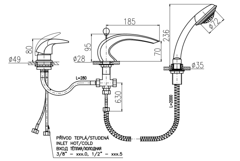 Смеситель на борт ванны Rav Slezak Dunaj D472.5S хром