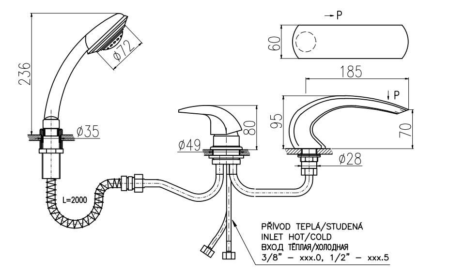 С ручным душем, Каскадный излив