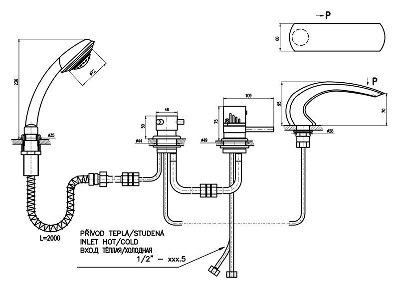 Смеситель на борт ванны Rav Slezak Dunaj DT272.5P хром
