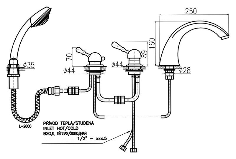 Смеситель на борт ванны Rav Slezak Labe L469.5PSM бронзаАртикул