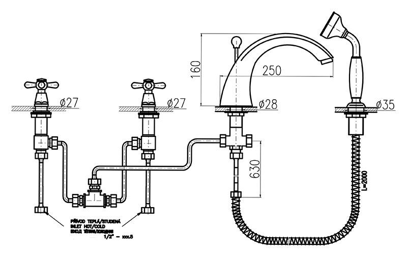 Смеситель на борт ванны Rav Slezak Morava retro MK169.5S хром