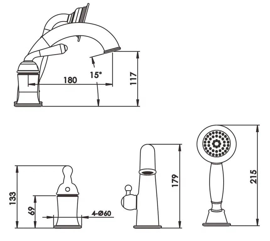 Смеситель на борт ванны Rose R0212H чёрный матовый