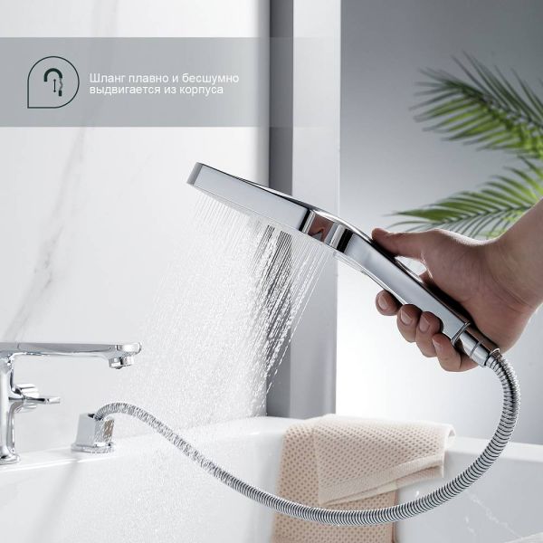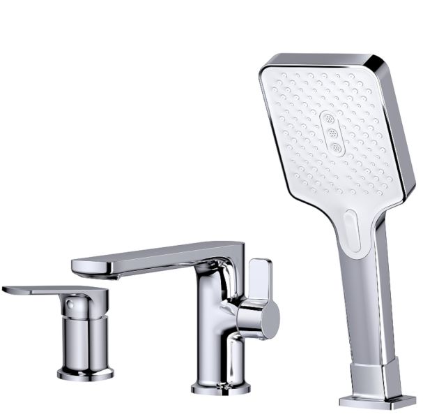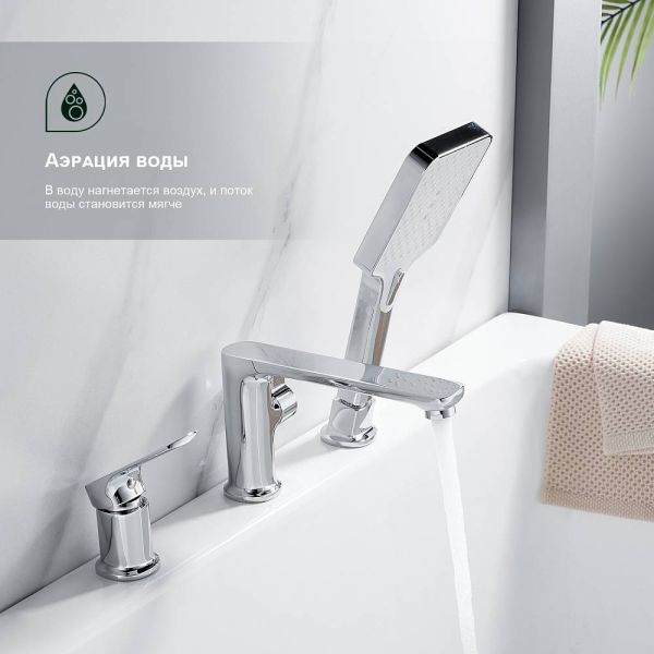 Смеситель на борт ванны Splenka S30.31. Цвет: хром. Материал: латунь. Управление: однорычажное. Механизм: керамический картридж. Излив: фиксированный. Стандарт подводки: G 1/2. Тип подводки: гибкая. Количество режимов струи ручного душа: 3. Монтаж: на борт ванны.