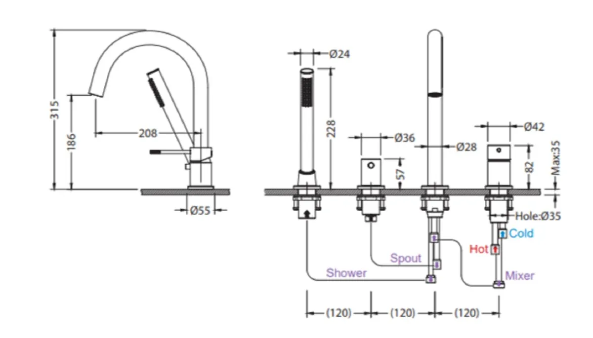 - Смеситель врезной - 1 шт.;