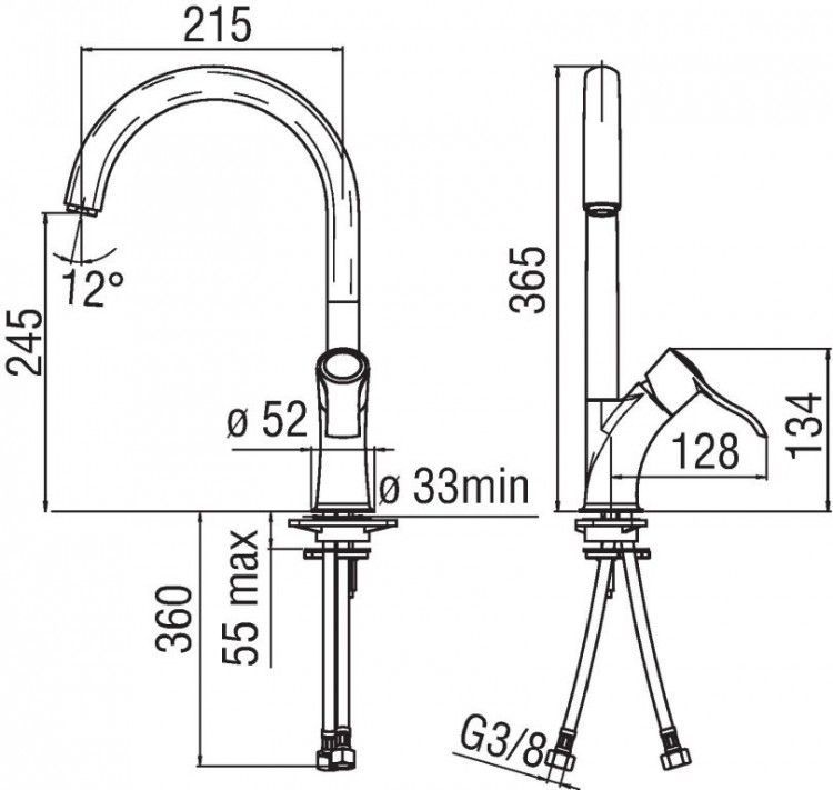 • Стандарт подводки:3/8"