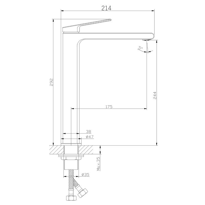 • Высота смесителя: