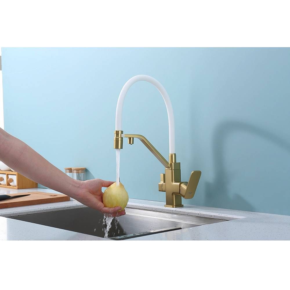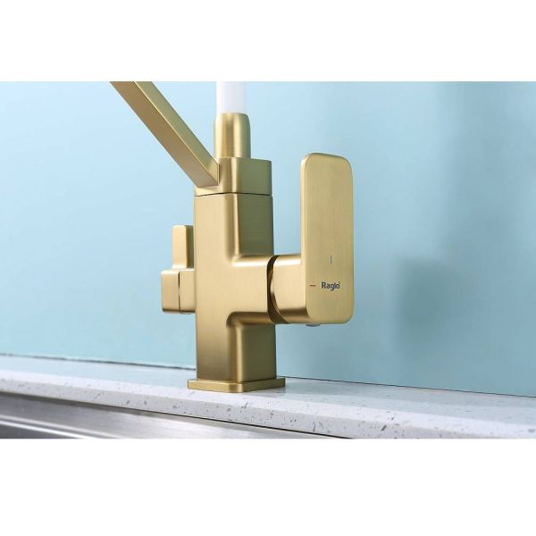 Смеситель Raglo R85.62.03 для кухни с подключением фильтра золотой сатин купить