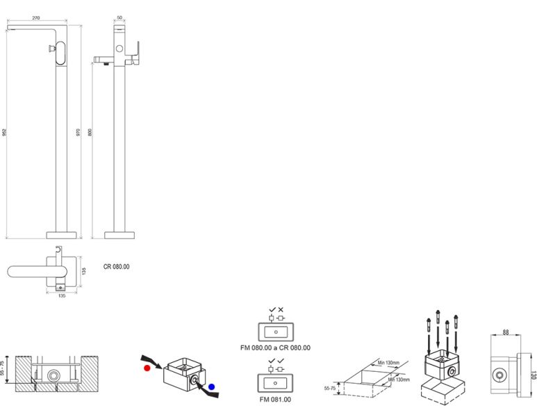 Смеситель устанавливается с ванной Freedom О или Freedom R . Для очистки внешней поверхности используйте средство RAVAK Cleaner Chrome.