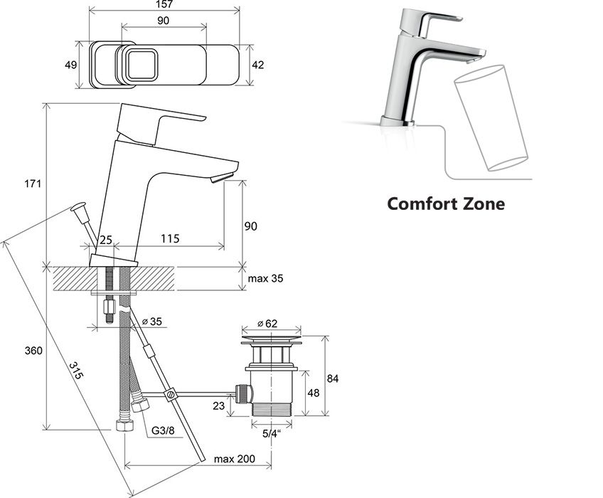 - высота смесителя: 170 мм - удлиненный для большего комфорта