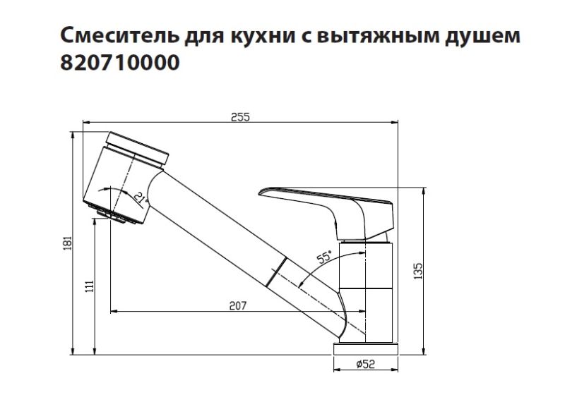 - Вытяжной излив (на 0,8 м.) – максимум удобства и функциональности на Вашей кухне