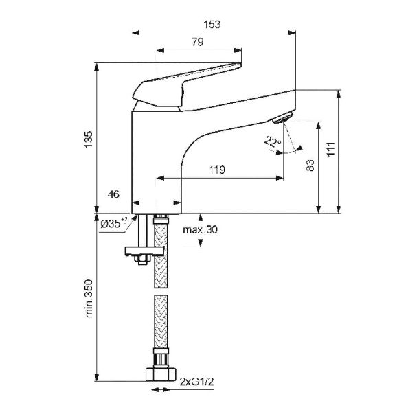 • Высота смесителя: