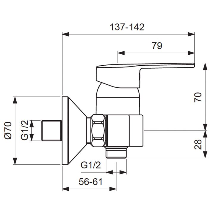 LOGIK Смеситель для душа, душевой гарнитур в комплекте (душевая лейка Ø70 мм, металлический шланг 1500 мм, держатель для лейки).