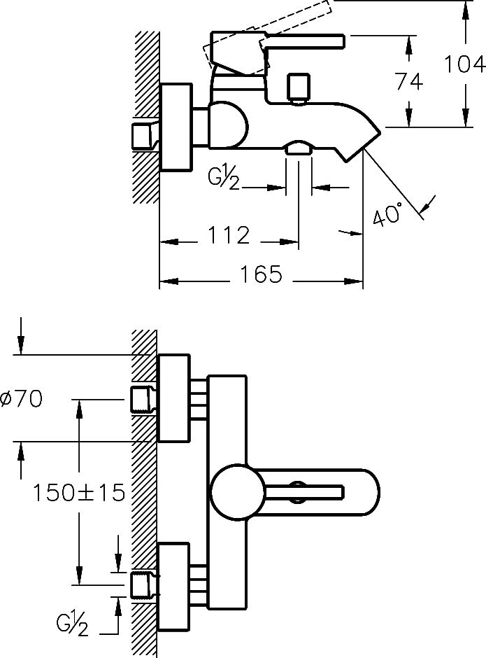 Смеситель VitrA Minimax S A41994EXP для ванны и душа