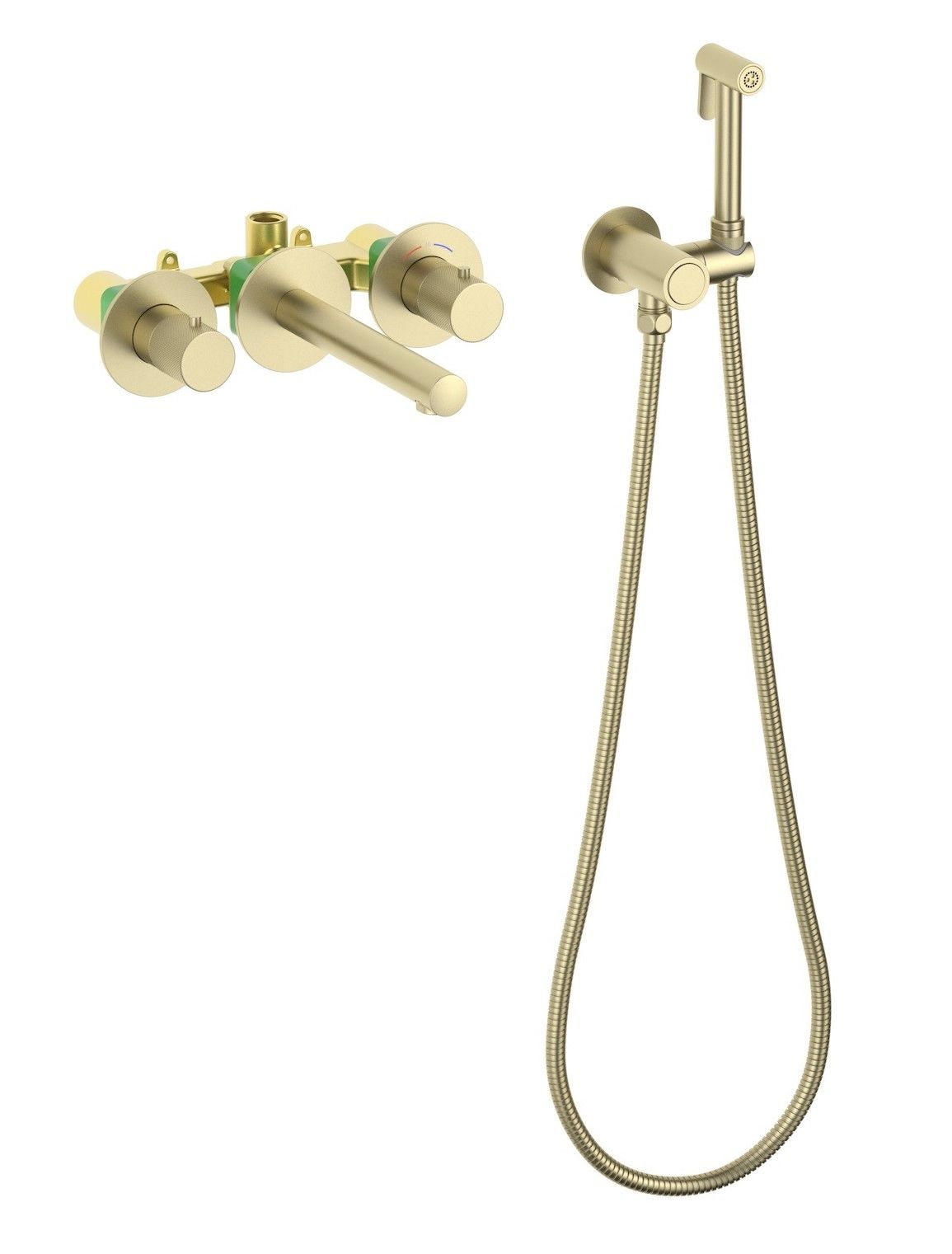 Смеситель встраиваемый для раковины Timo Saona 2383/17SM с гигиеническим душем золото матовое купить