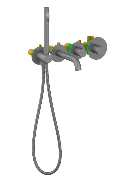 "Черное золото"- неизменно эффектный и привлекающий внимание цвет. Приглушенный мягкий оттенок черного, подчеркнет форму раковины или цвет мебели. Встраиваемый смеситель Timo Saona 2324 предназначен для монтажа в твердой или полой стене. Уникальная дизайнерская модель с раздельными горизонтальными блоками создаст неповторимый современный интерьер в ванной комнате. Основные преимущества встроенного смесителя: коммуникации, крепления и механизмы спрятаны в стену и видны только декоративные элементы, установить встроенный смеситель можно в любом месте. Термостатический картридж поддерживает стабильную температуру воды, обеспечивая максимально комфортные условия для принятия водных процедур. Стильная лейка-карандаш удобна в использовании и фиксируется в держателе с подключением шланга для душа. Регулировка температуры и напора воды осуществляется джойстиком справа. Переключение потока воды с излива на ручную лейку осуществляется поворотом ручки дивертора. Сложностей монтажа не возникает при установке смесителя опытным сантехником. Внимательно изучите инструкцию по монтажу и эксплуатации. Цвет "черное золото" не капризен в уходе, на нем менее заметны загрязнения и мелкие царапины.