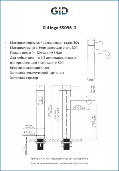 Смеситель высокий для раковины Gid Inga SS096-BM-D SS096BMD черный матовый купить