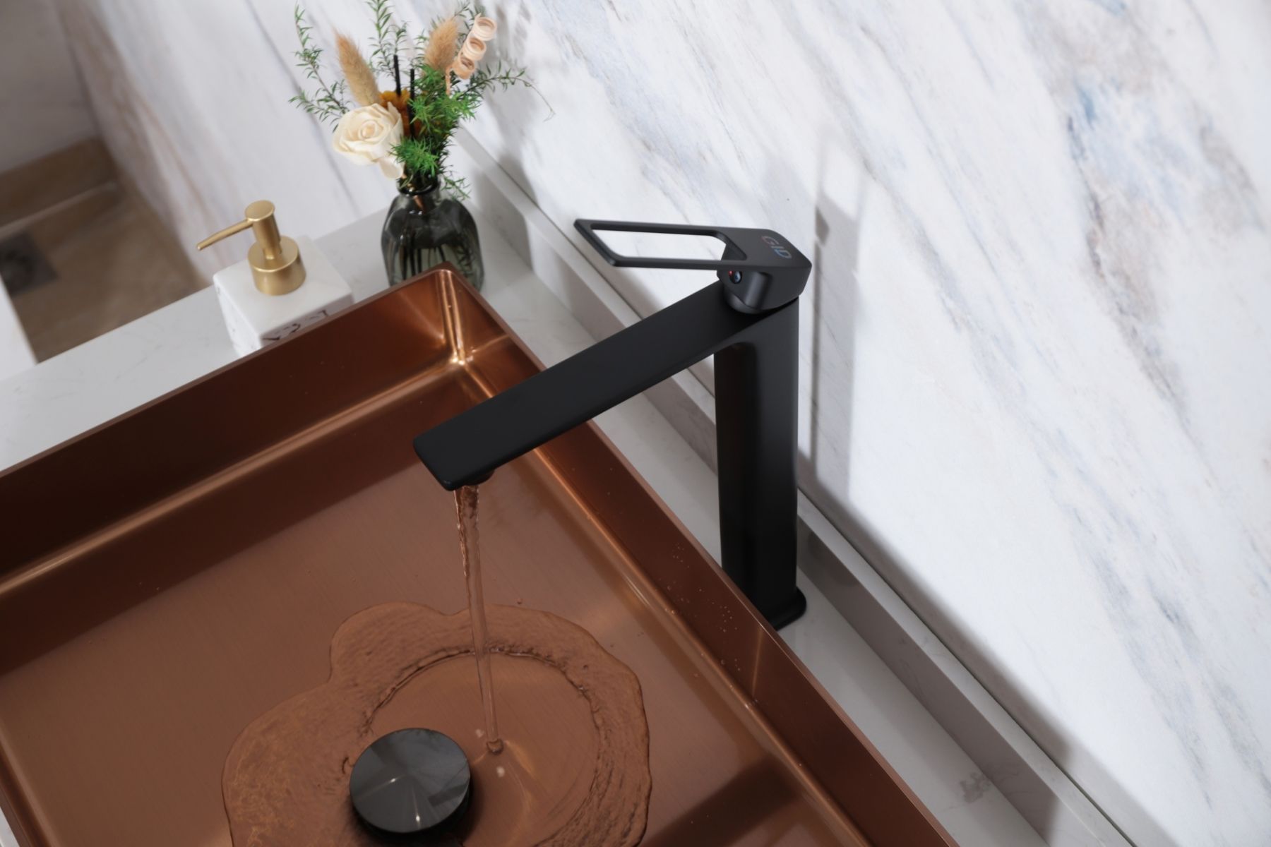 Смеситель высокий для раковины Gid Niagara L057-BM-D L057BMD черный матовый