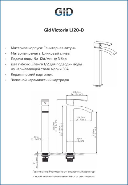 Смеситель высокий для раковины Gid Victoria L120-BM-D L120BMD черный матовый купить