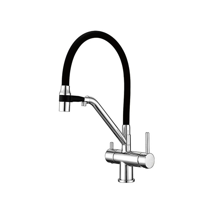 Смесители для кухни Gappo G4398-80 под фильтр с гибким изливом хром/чёрный