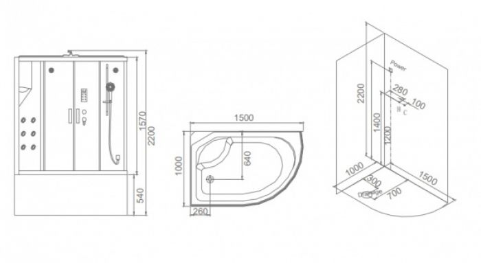 SSWW BU103B L Душевая кабина 1500X1000X2250