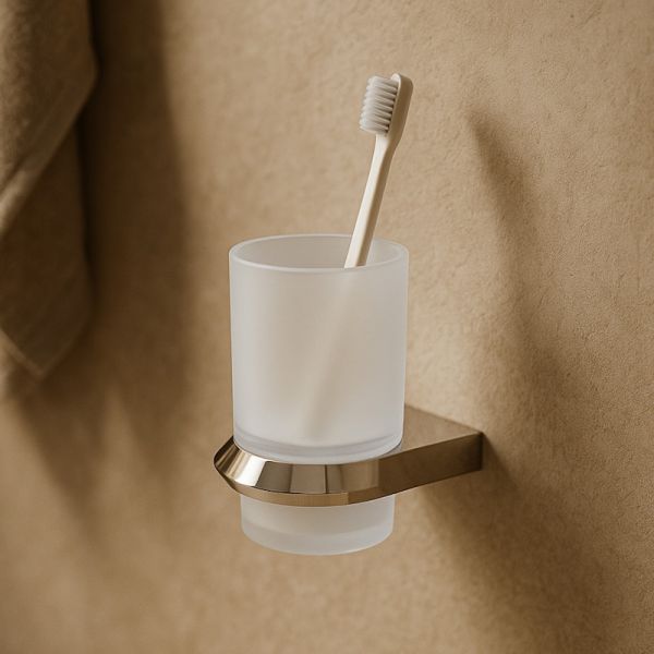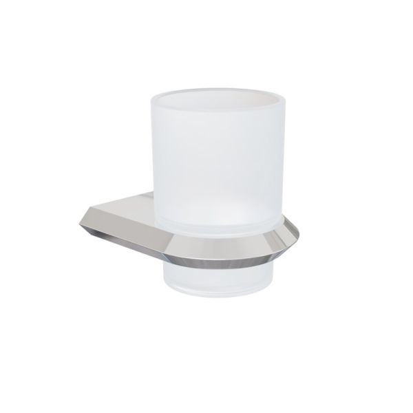 Подвесной стакан SPACE в хроме с матовым стеклом и корпусом ZAMAK + SUS-201. Настенный монтаж экономит место, а антиследовое покрытие сохраняет блеск и облегчает уход.