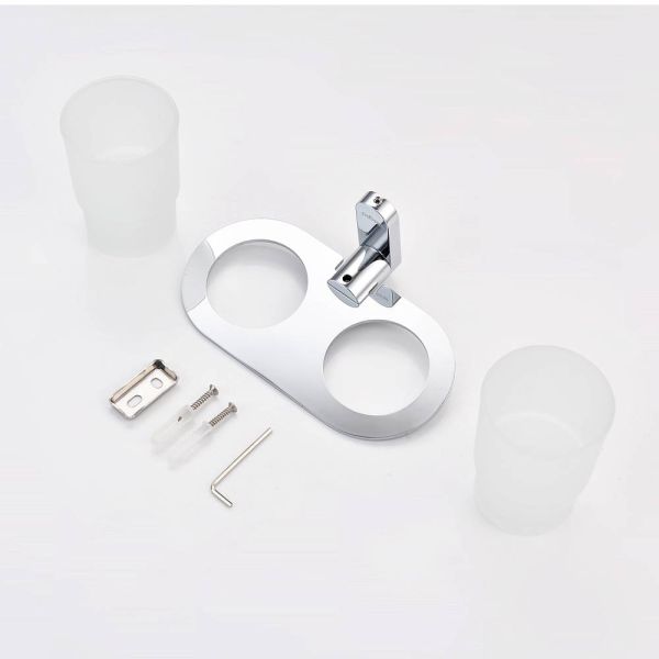 Raglo R300.08 Два стеклянных стакана с держателем. Форма округлая, цвет - хром, глянцевое покрытие. Крепление в комплекте.