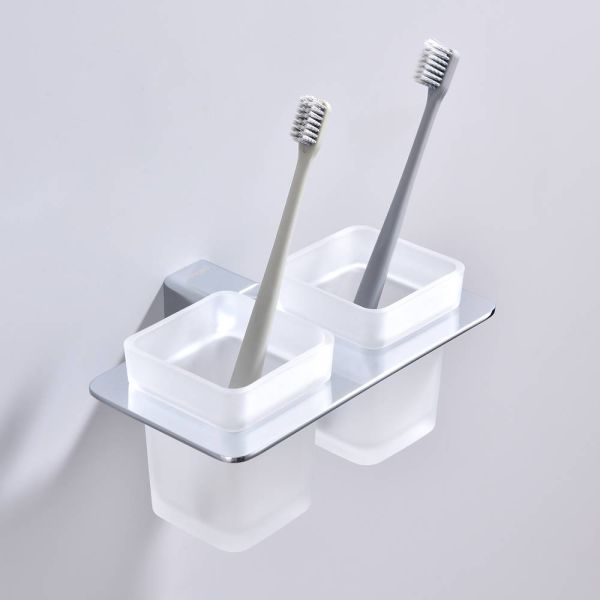 Дизайн: Держатель выполнен в цвете хром, что придает ему современный и элегантный вид. Лаконичный дизайн стаканов гармонично сочетается с любым интерьером ванной комнаты.