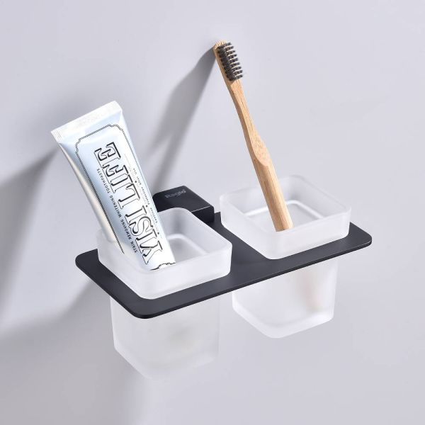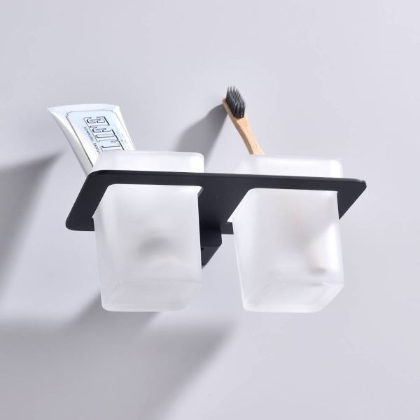 Дизайн: Держатель выполнен в черном цвете, что придает ему современный и элегантный вид. Лаконичный дизайн стаканов гармонично сочетается с любым интерьером ванной комнаты.