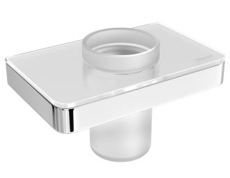 Стакан для зубных щёток Lemark Glass Line 9731034 с держателем хром/белое стекло купить