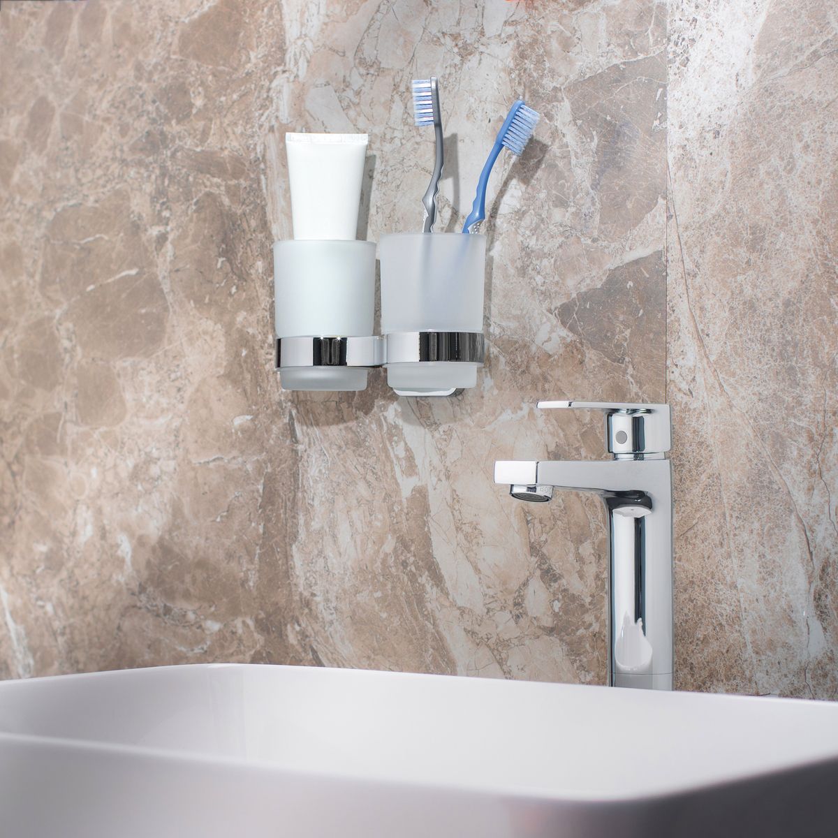 Стеклянный стакан к стене двойнойДержатель, стакан, набор для монтажа, клей