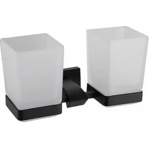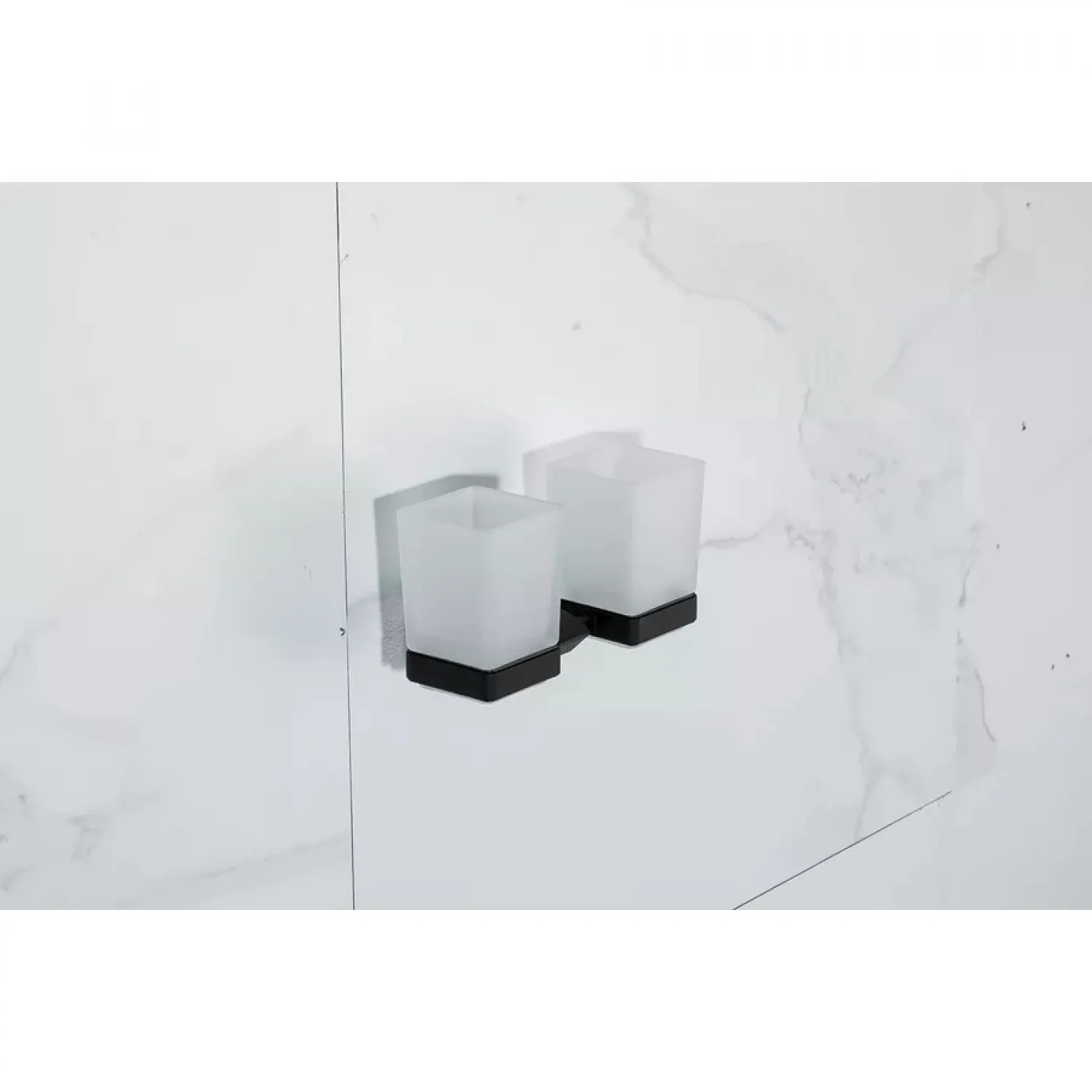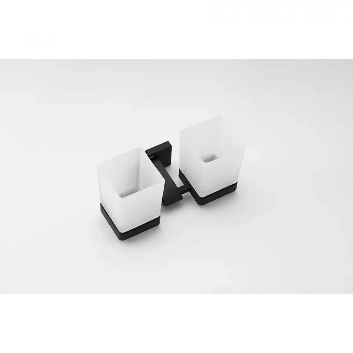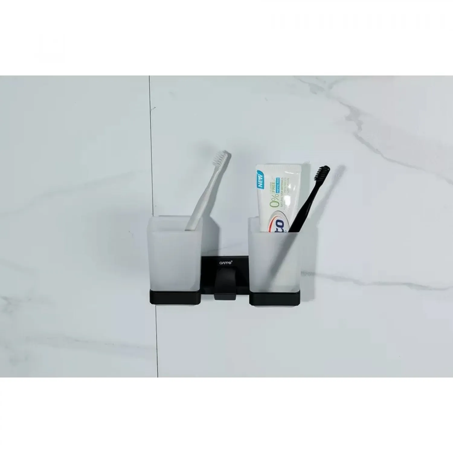 Двойной стакан для зубных щеток настенный Gappo G0708-6, цвет черный, стаканы из стекла, держатель латунный.