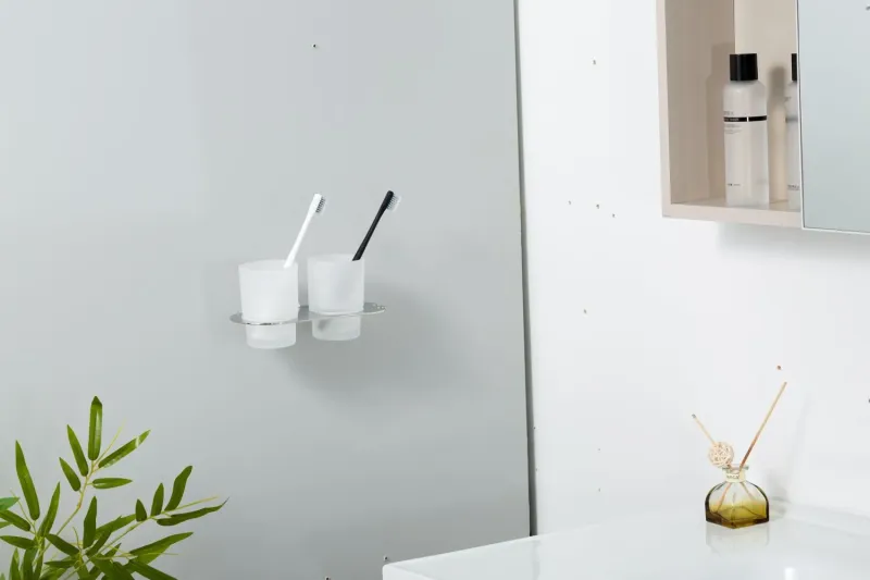Держатель + 2 стакана для ванной комнаты Gappo G30908-8 - это стильный и функциональный аксессуар для вашей ванной комнаты. Изготовленный из металла и стекла, он сочетает в себе прочность и элегантность, а белый и хромированный цвета придают ему современный и стильный вид.