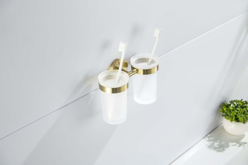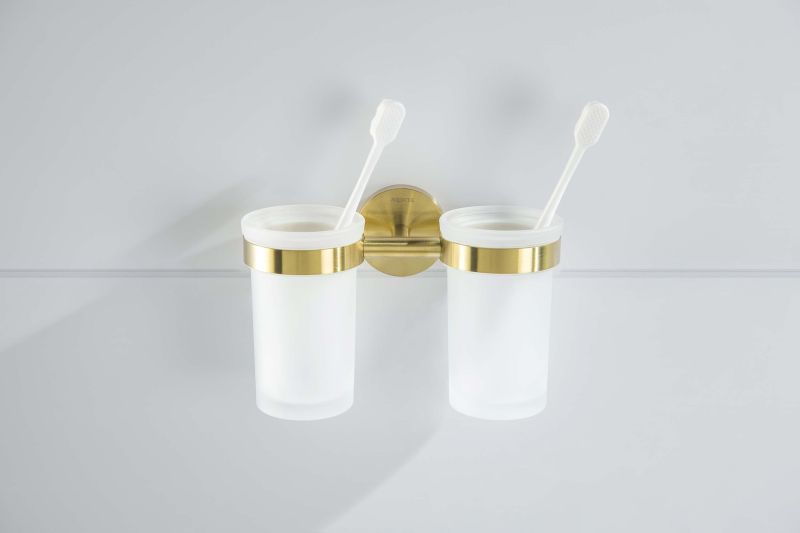Стакан с держателем двойной Aquatek Европа AQ4117BG шлифованное золото